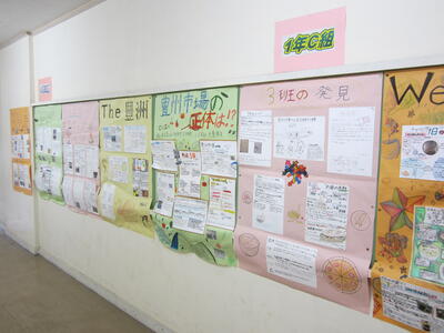 1年生の校外学習のまとめの壁新聞が木工室・金工室前に掲示されています。
