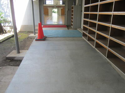 このたび体育館の段差解消の工事が完了し、体育館入り口がスロープ化されました。