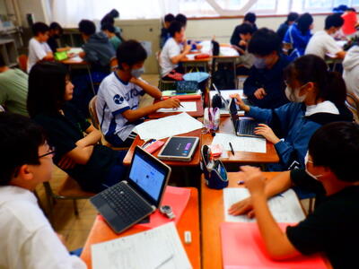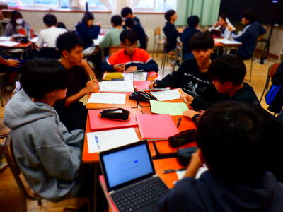 今日は、11月7日(金)の生徒総会に向けて、各委員会が後期の活動方針を基に作成した議案書に対して各学級から出た質問事項の回答を考えました。