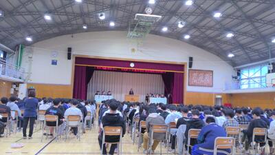 後期より2年生が中心となり、新しくスタートした生徒会本部・各委員会ですが、この総会では、前期の反省も踏まえながら、活動方針等を示しました。