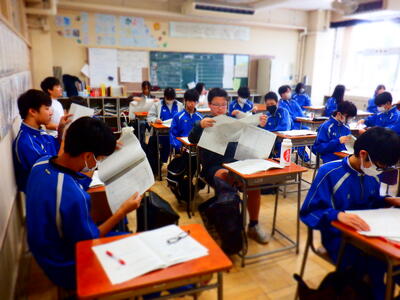 定期考査に向けて取り組んだ成果が発揮できた人、結果を反省して未定着分野の復習に取り組む人等、さまざまです。各自が今回の考査を今後の学習につなげるように努めています。