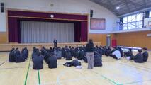 続けて、生活指導主任の先生より、「『周りへの目配りと気配りをしっかりする」行動ができるようにしよう」という話がありました。