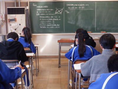 既習事項をもとに図形の性質の証明に取り組んでいます。