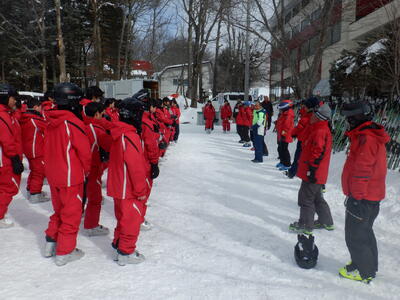 あっという間の最終日。「筋肉痛だあ」と言っている人はいますが、大きなけがなくスキー実習を終えることができました。3日間、ずっと良い天候に恵まれ、初めてのスキーだった人も「スキー楽しい!」「今日はこんなことができるようになった!」と口にしていました。