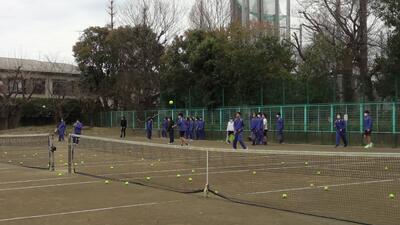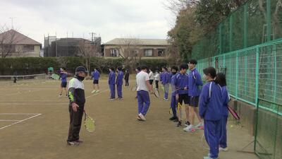 現在、3年生の体育は、向陽スポーツ文化クラブ(KSCC)の方を指導アシスタントにお招きして、テニスの授業を行っています。高校入試前だからこそ、3年生たちは思い切り体を動かし、楽しんでいます。